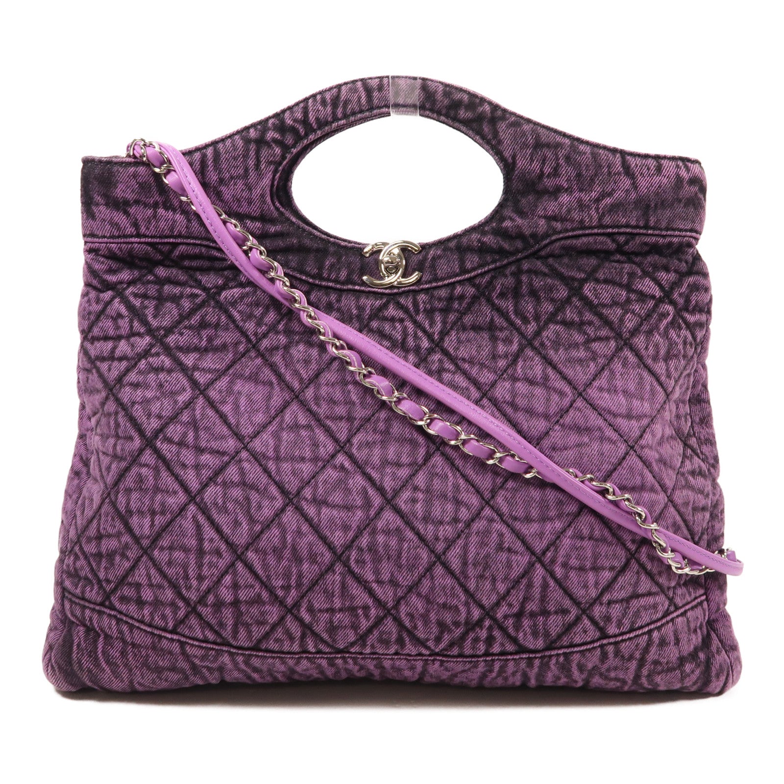 CHANEL 牛仔布Chanel 31金扣手挽肩背兩用袋