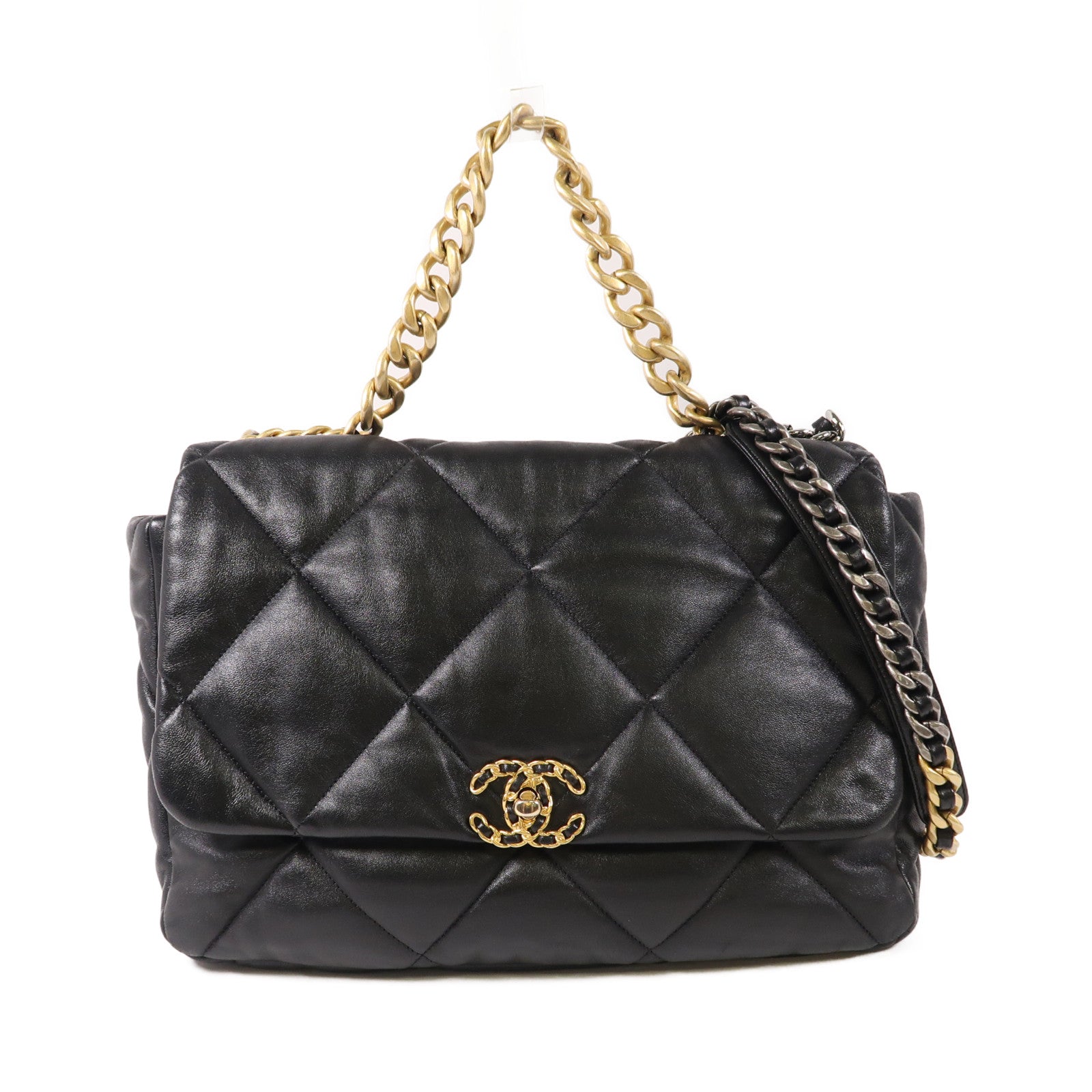 CHANEL 羊皮皮革C19金扣鏈帶手挽肩背兩用袋
