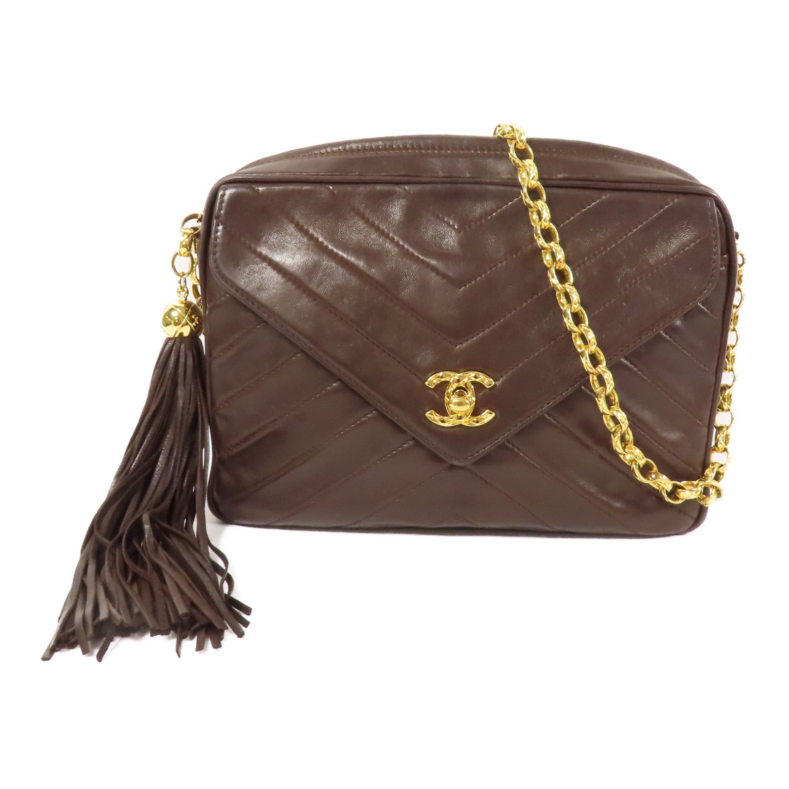 CHANEL 羊皮皮革Vintage Chain Shoulder金扣肩背袋