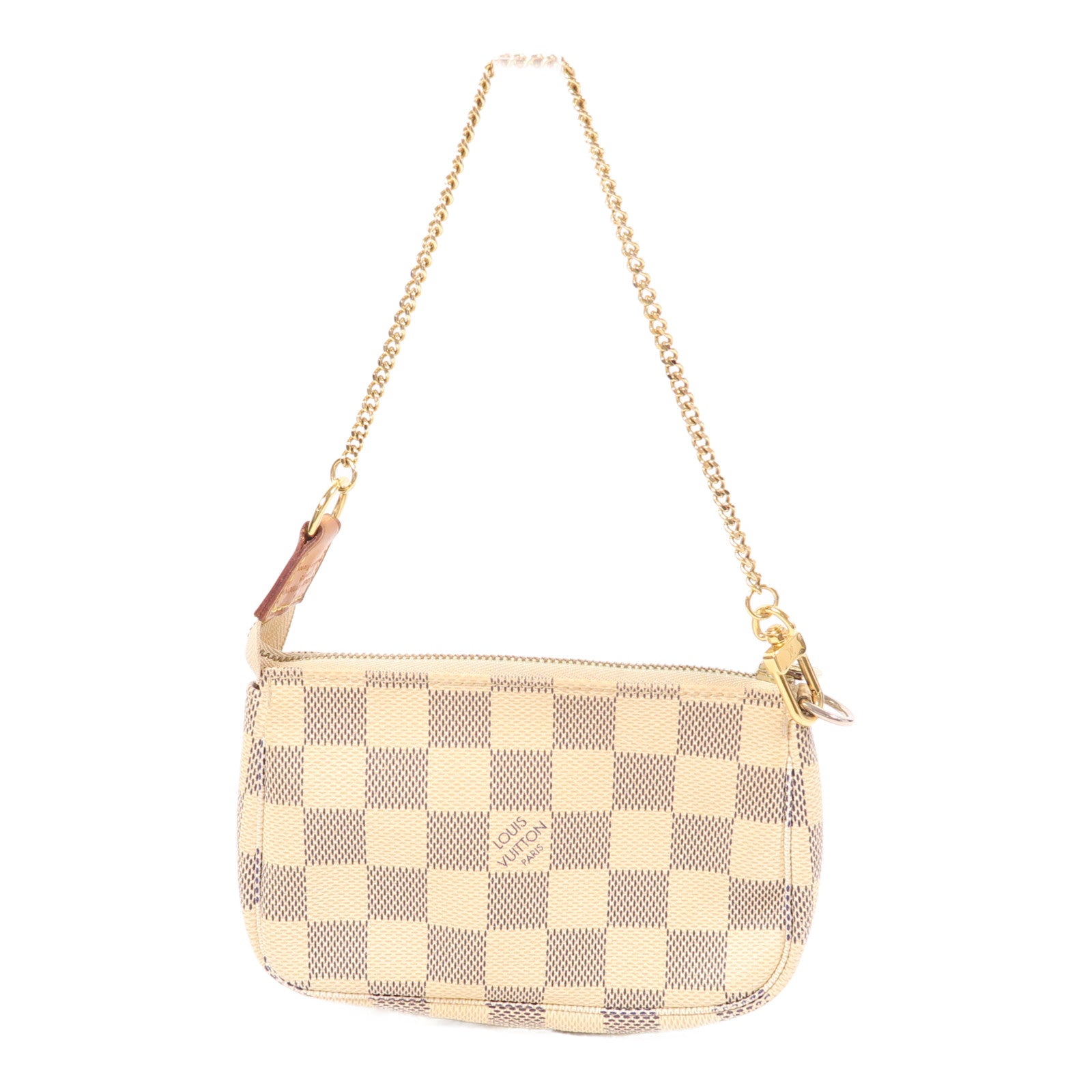 LOUIS VUITTON Damier Azur Mini Pochette Accessories金扣鏈帶手挽袋