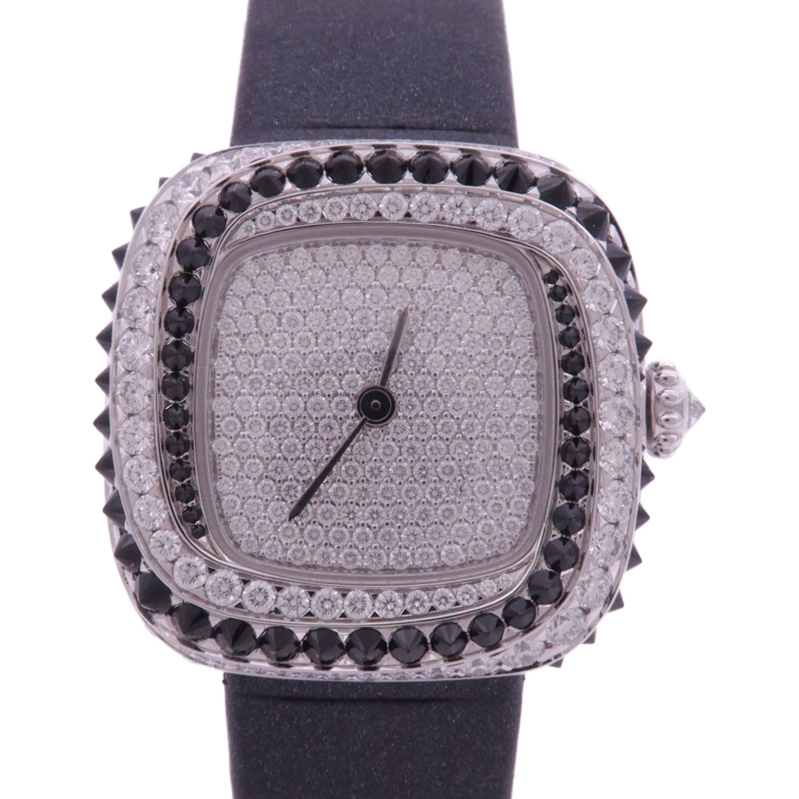 CARTIER Coussin De白金/鑽石手錶石英機芯黑色
