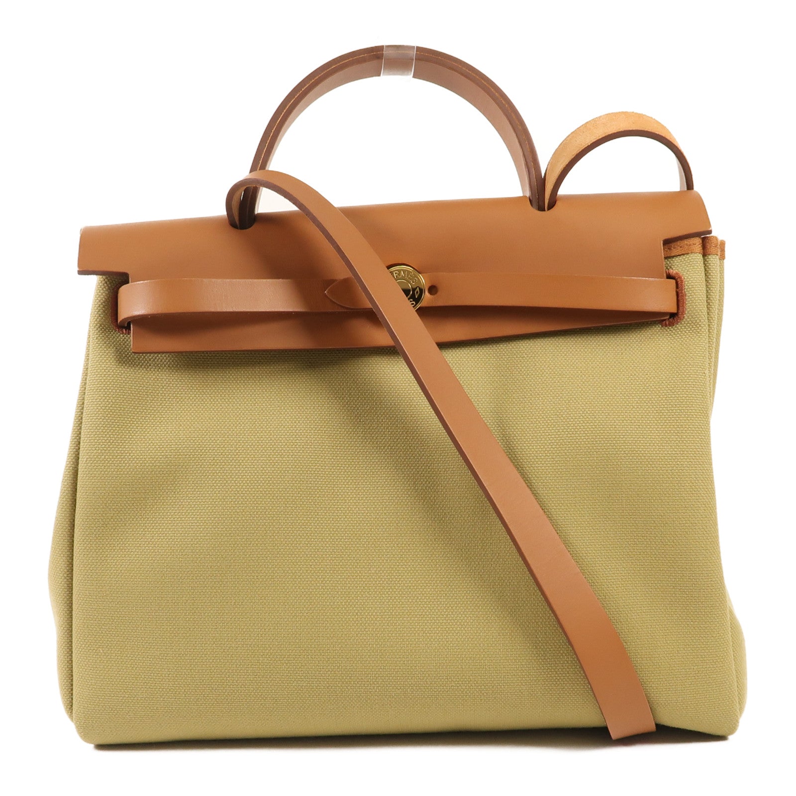 HERMES 帆布Herbag PM金扣手挽肩背兩用袋Poussiere