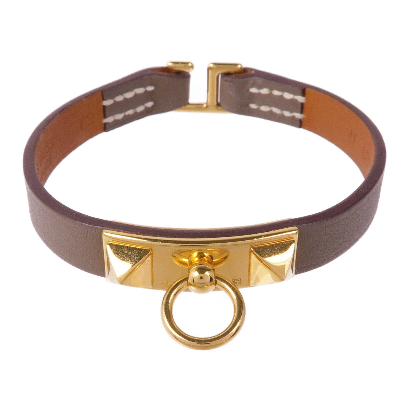 HERMES Swift皮革Rivale Mini Bracelet金扣手帶Etoupe