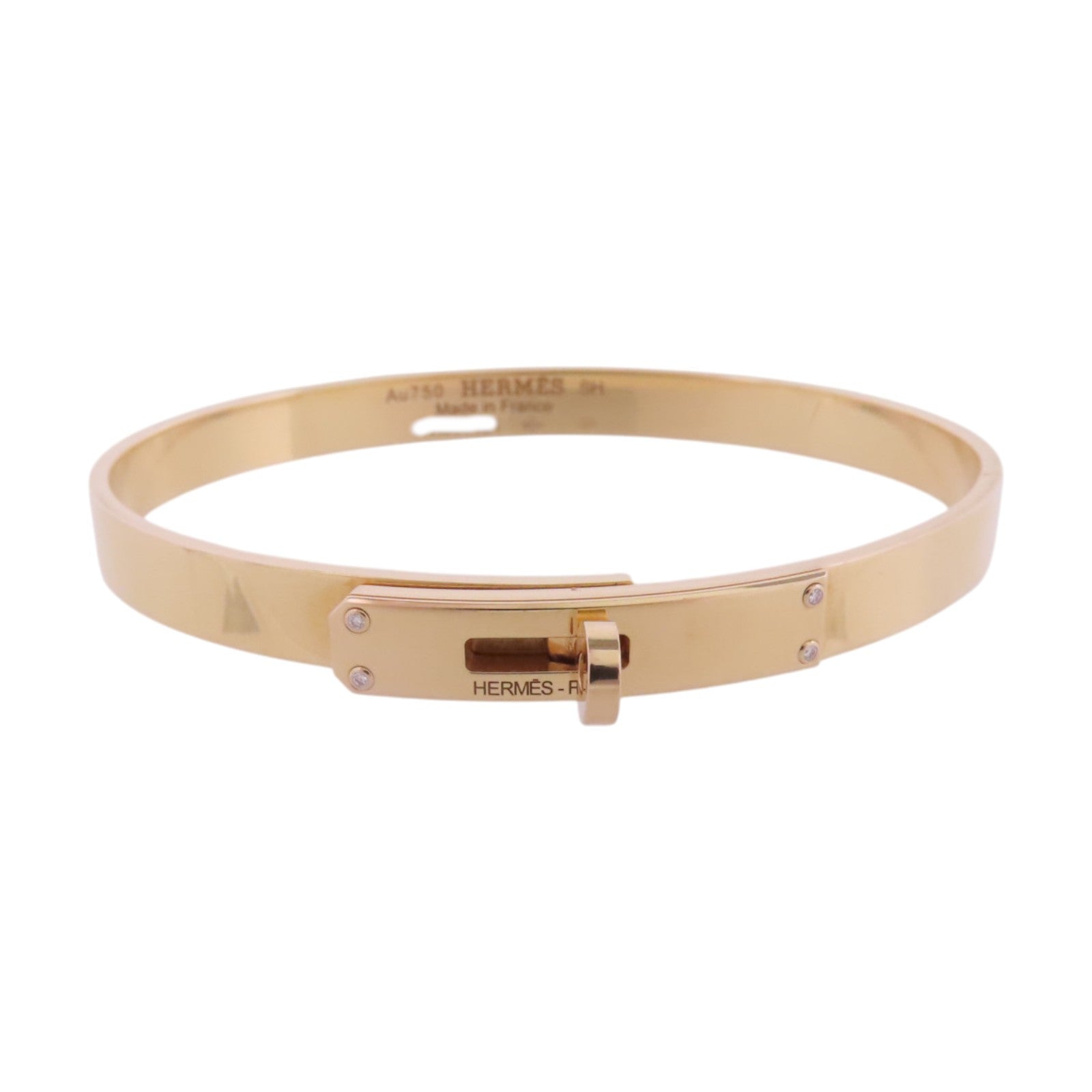 HERMES 18K玫瑰金Kelly Diamond Bracelet金扣鑽石手鐲