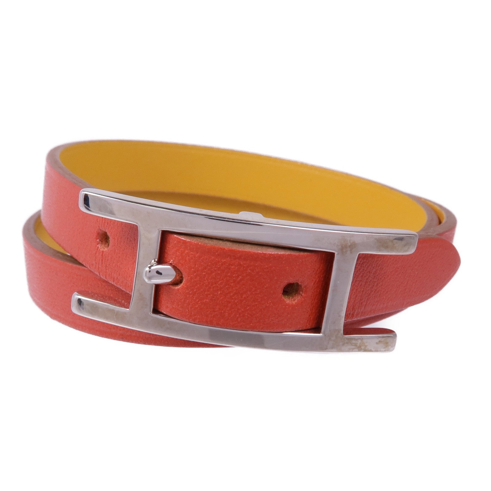 HERMES Swift皮革Behapi Double Tour Bracelet銀扣手帶