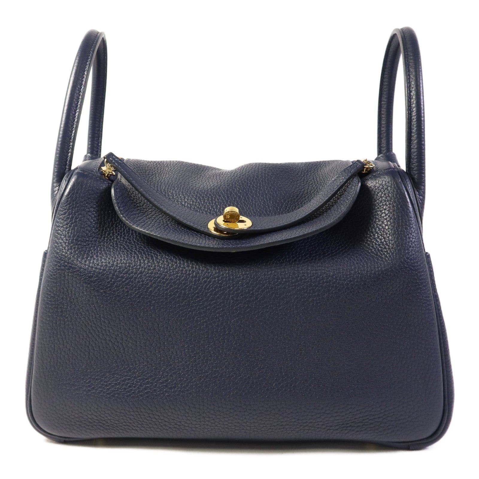 HERMES Clemence皮革Lindy 30金扣手挽肩背兩用袋Bleu Nuit
