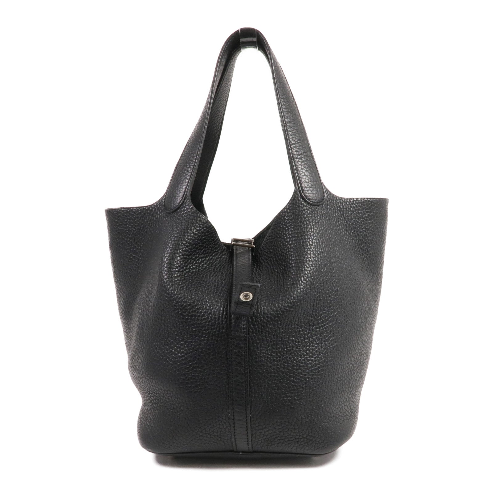 HERMES Clemence皮革Picotin MM銀扣手挽袋Noir