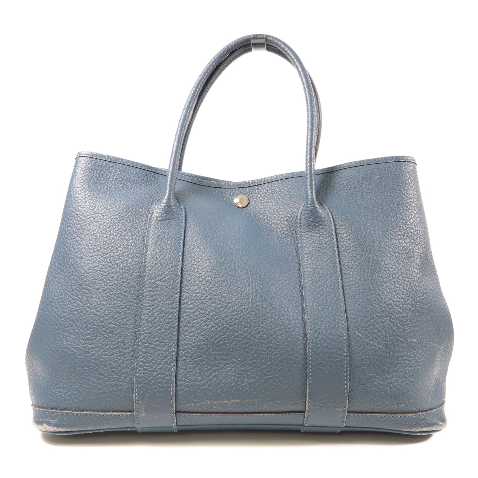 HERMES Negonda皮革Garden Party PM銀扣手挽袋Bleu Orage藍色