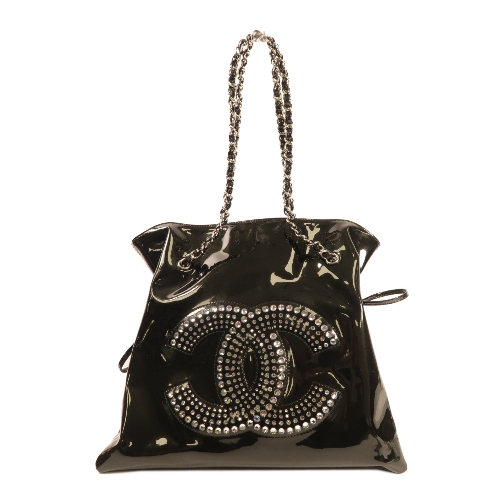 CHANEL 漆皮皮革Chain Shoulder銀扣鏈帶肩背袋黑色