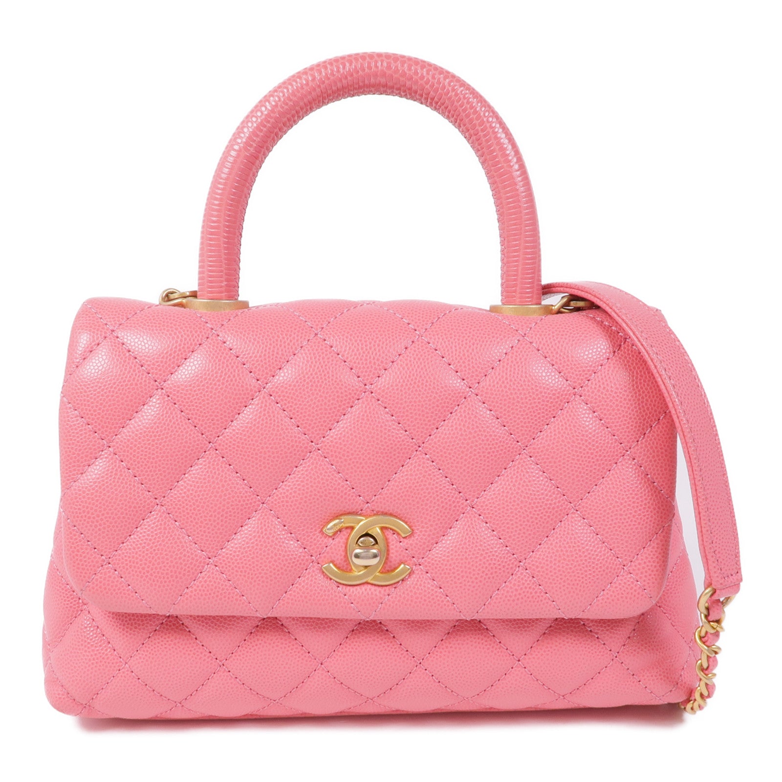CHANEL 蜥蜴皮革/牛皮皮革Coco Handle Small金扣手挽肩背兩用袋