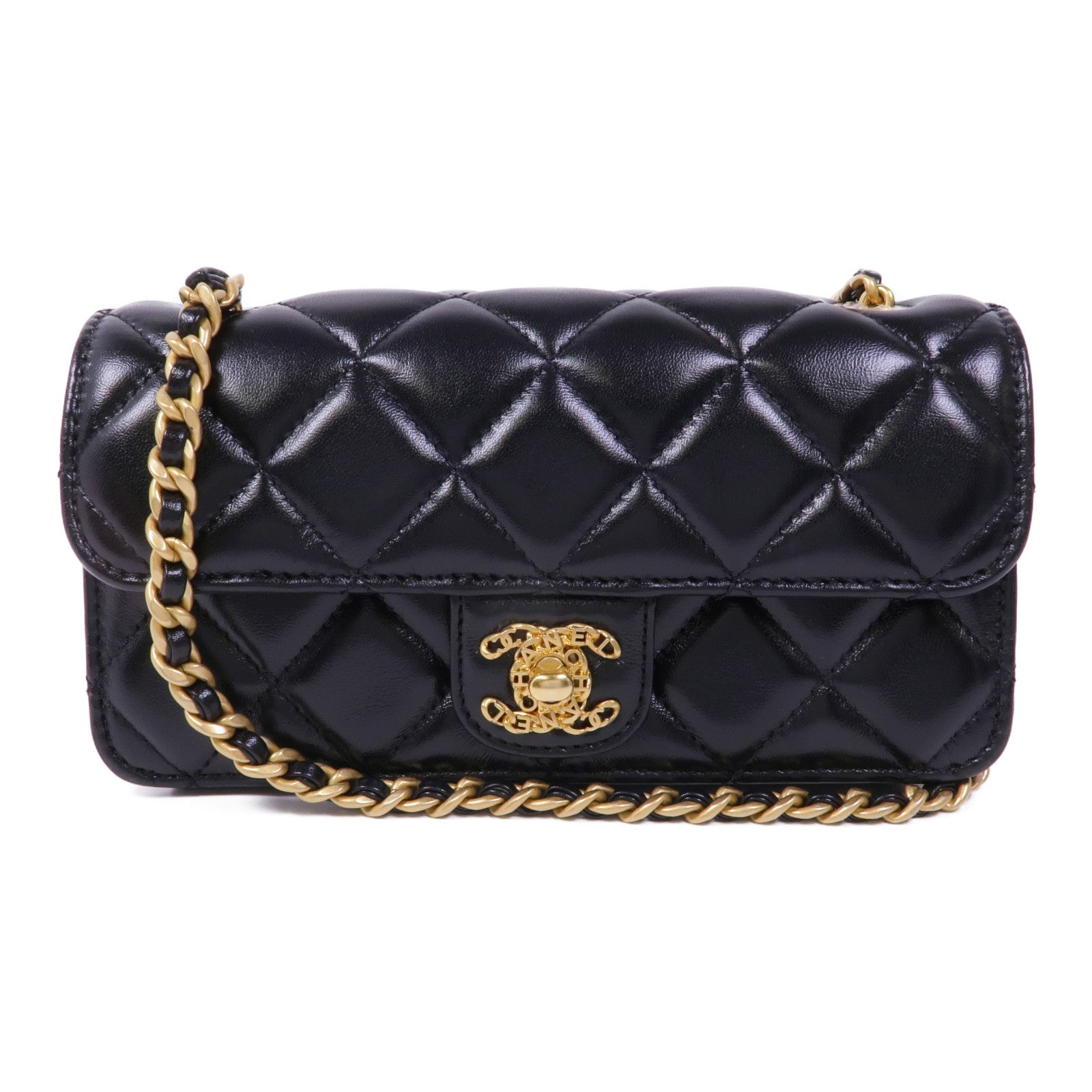 CHANEL 牛皮皮革Chain Shoulder Bag金扣鏈帶肩背袋