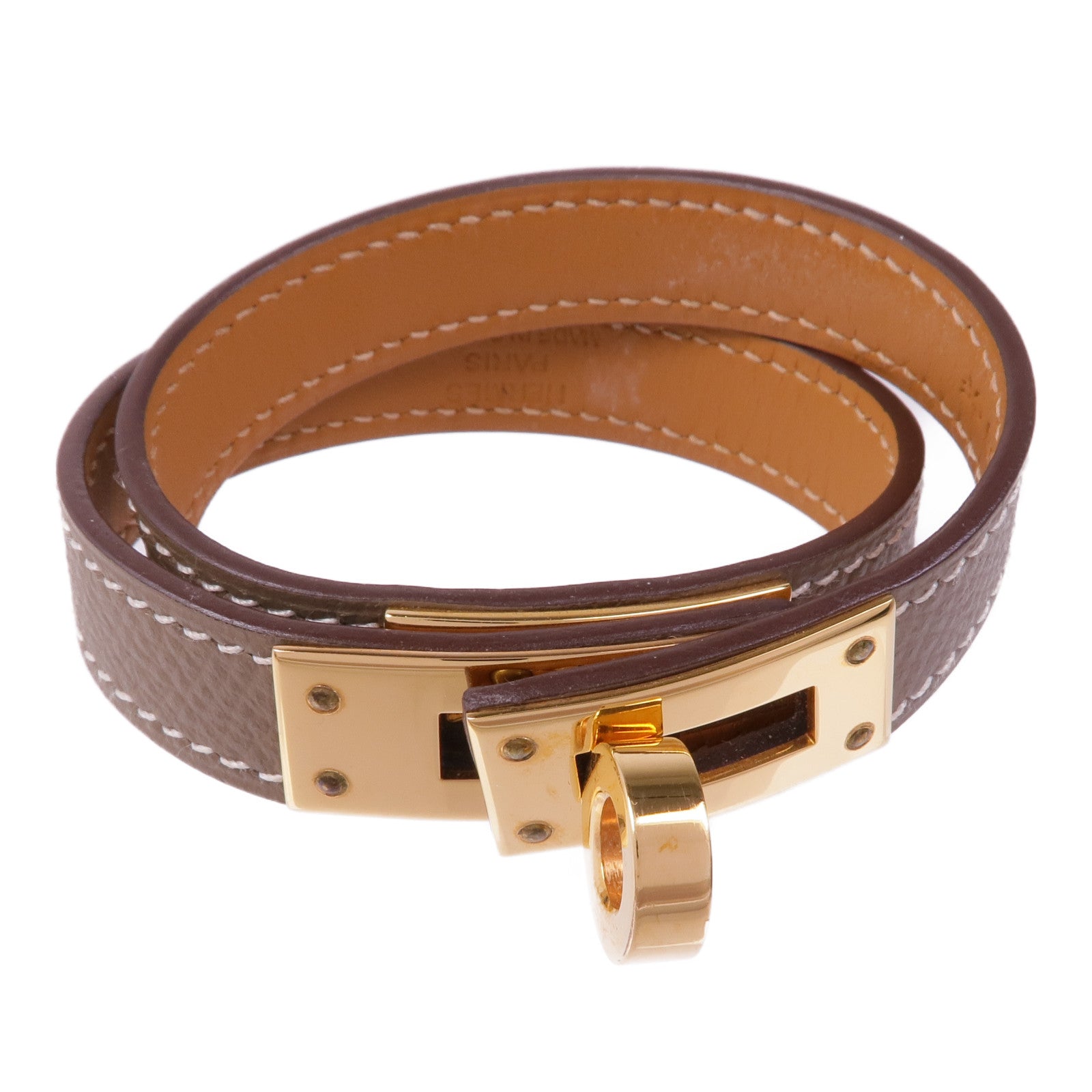 HERMES Epsom/Swift皮革Kelly Double Tour金扣手帶Etoupe