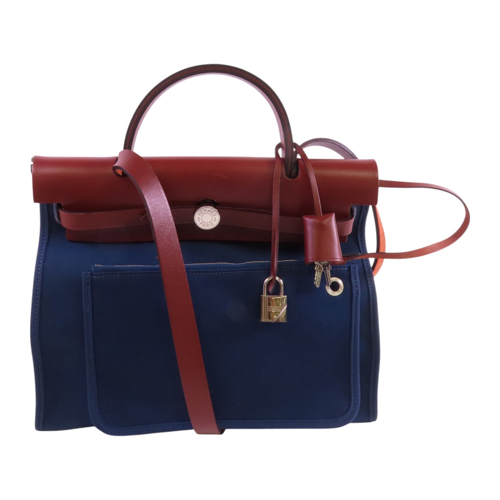 HERMES 帆布Herbag PM銀扣手挽肩背兩用袋