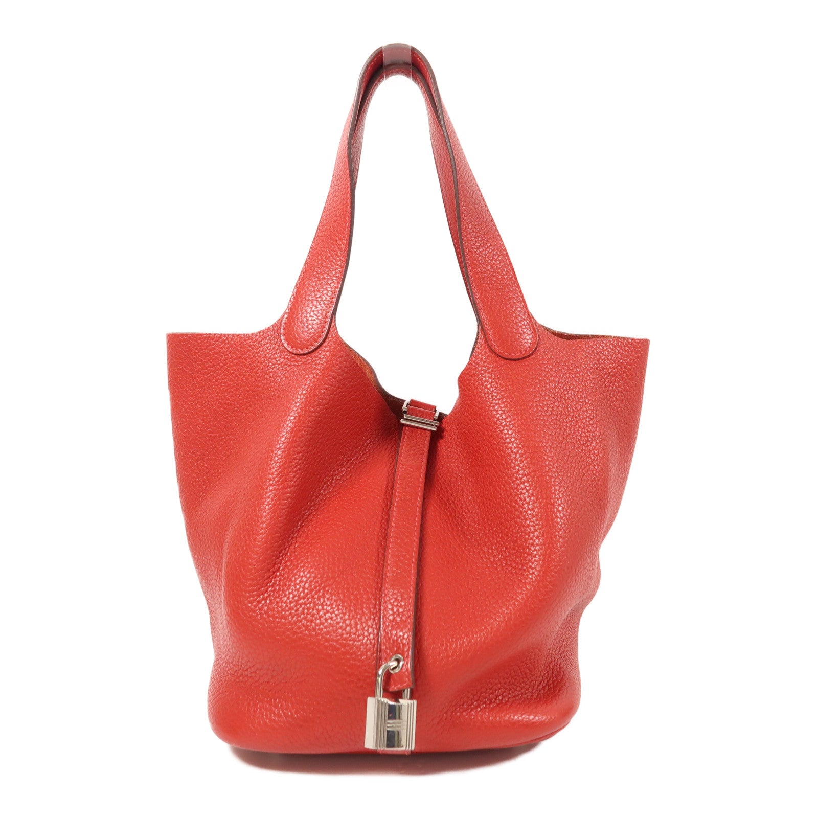 HERMES Clemence皮革Picotin MM銀扣手挽袋Red