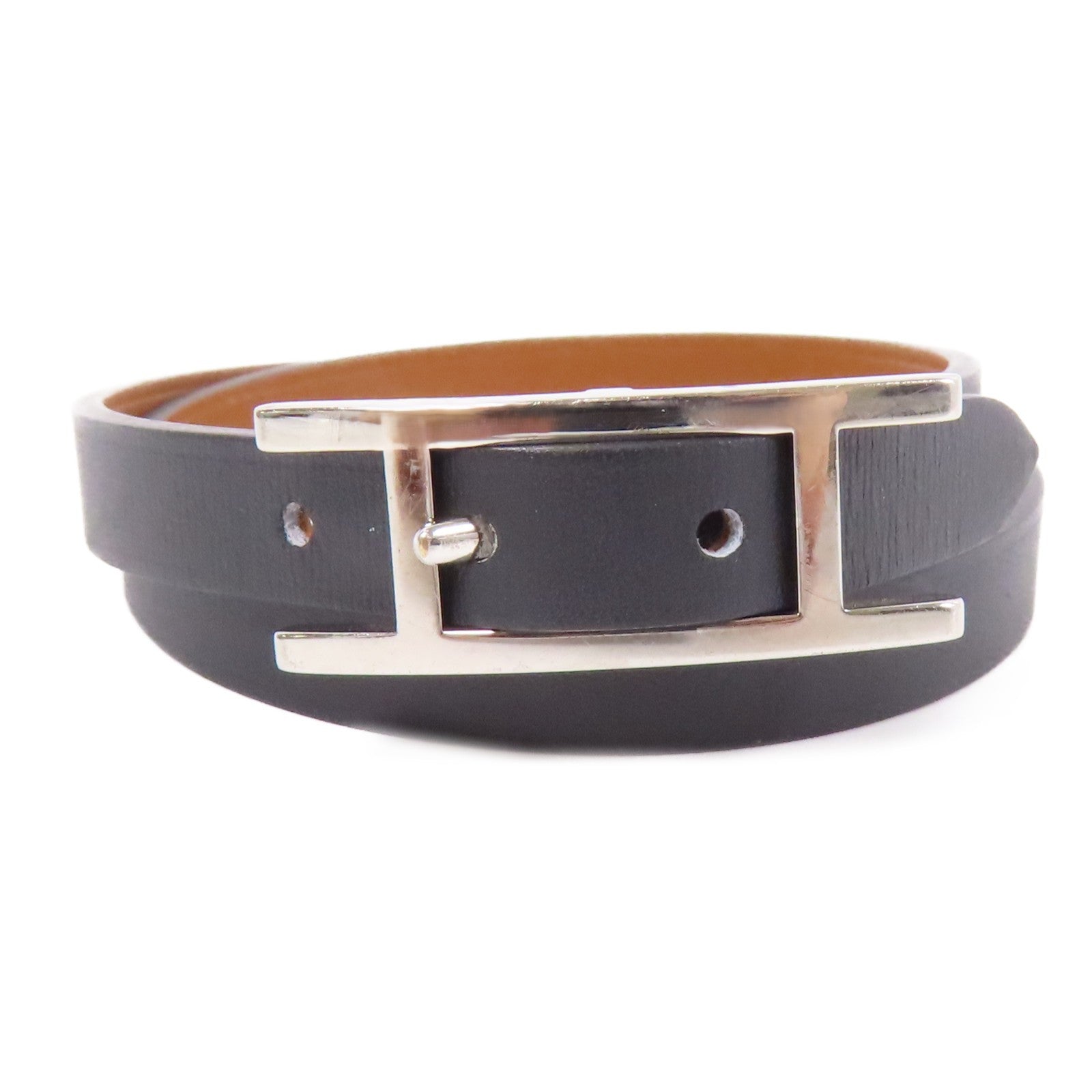 HERMES Swift皮革Behapi Double Tour銀扣手鏈